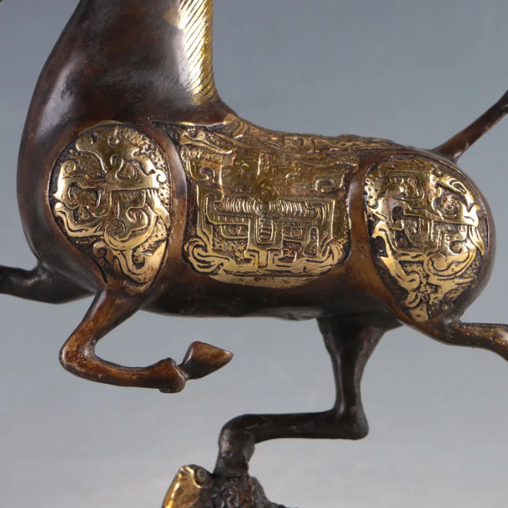 Get Ancient Gilt Copper Horse Riding Swallow Statue