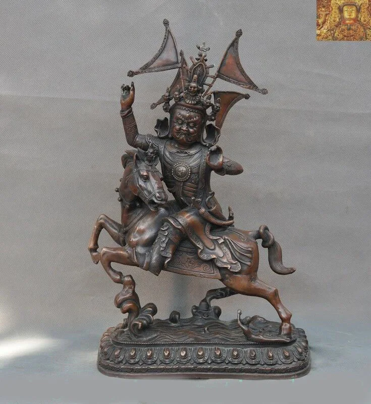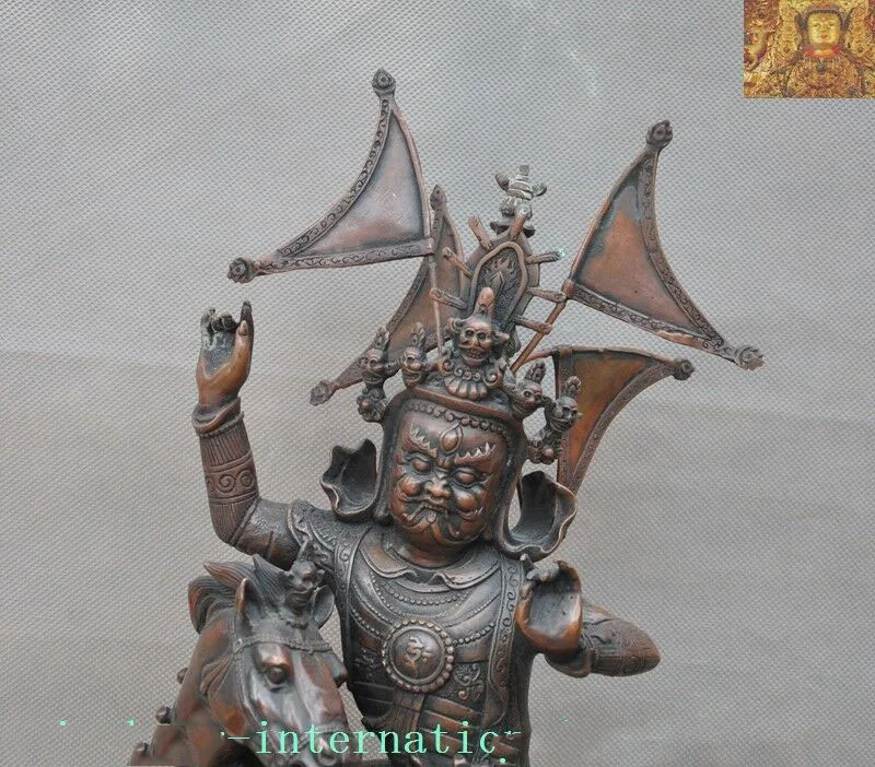 Limited wedding decoration Tibetan Buddhism pure Bronze horse riding Mahakala Wrathful Deity Buddha Statue